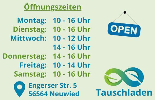 Wir eröffnen am 18.04.2026 in der Engerser Straße 5, 56564 Neuwied den neuen Tauschladen.